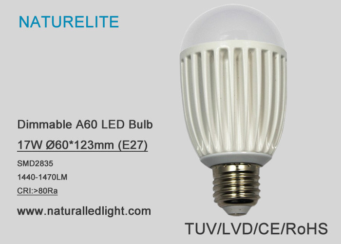 Dimmable 17W LED bulb TUV,CE approval Description: 1. LD-A60-N36C-17W,17W led bulb uses die-casting housing for good heat dissipation, high quality and fashionable style. 2. Low cost performance, it’s cheaper than other similar led bulb, but much brighter 3. CIR and lighting efficacy meet the standard test 4. High effiency driver 5. Reasonable dimensions could match with traditional lighting fixtures 6. Fine beam angle: 120 degree 7. Modular design, green environment